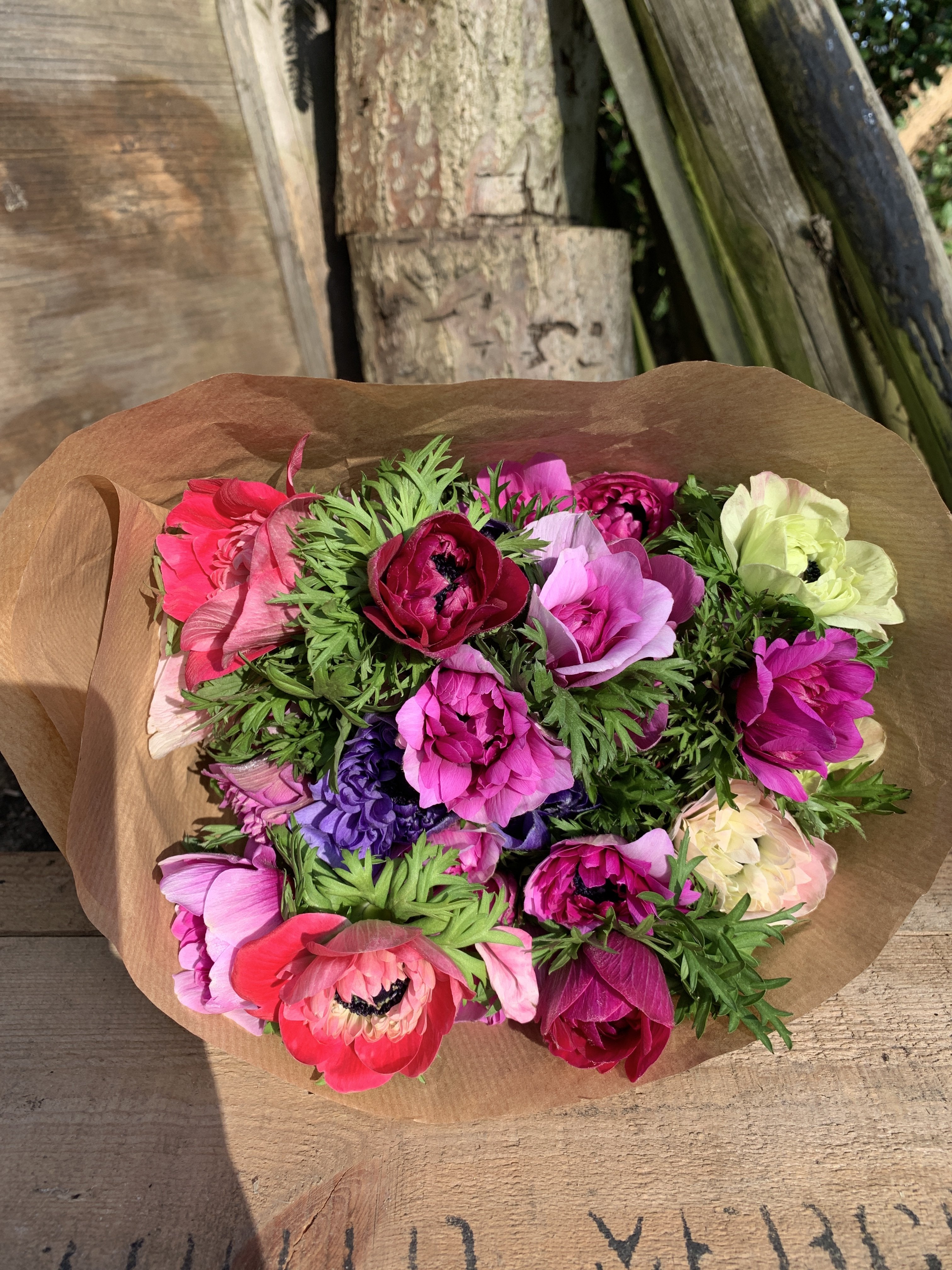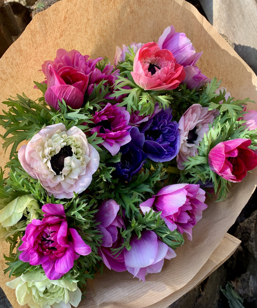 The current selection for your individual bouquet is the breathtaking Anemones. Their incredible colors make them a must-see beauty. It is essential to appreciate them in their limited time. 20 stems of the freshest Anemones will be sent directly to you. A perfect Easter present.