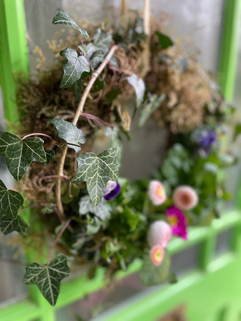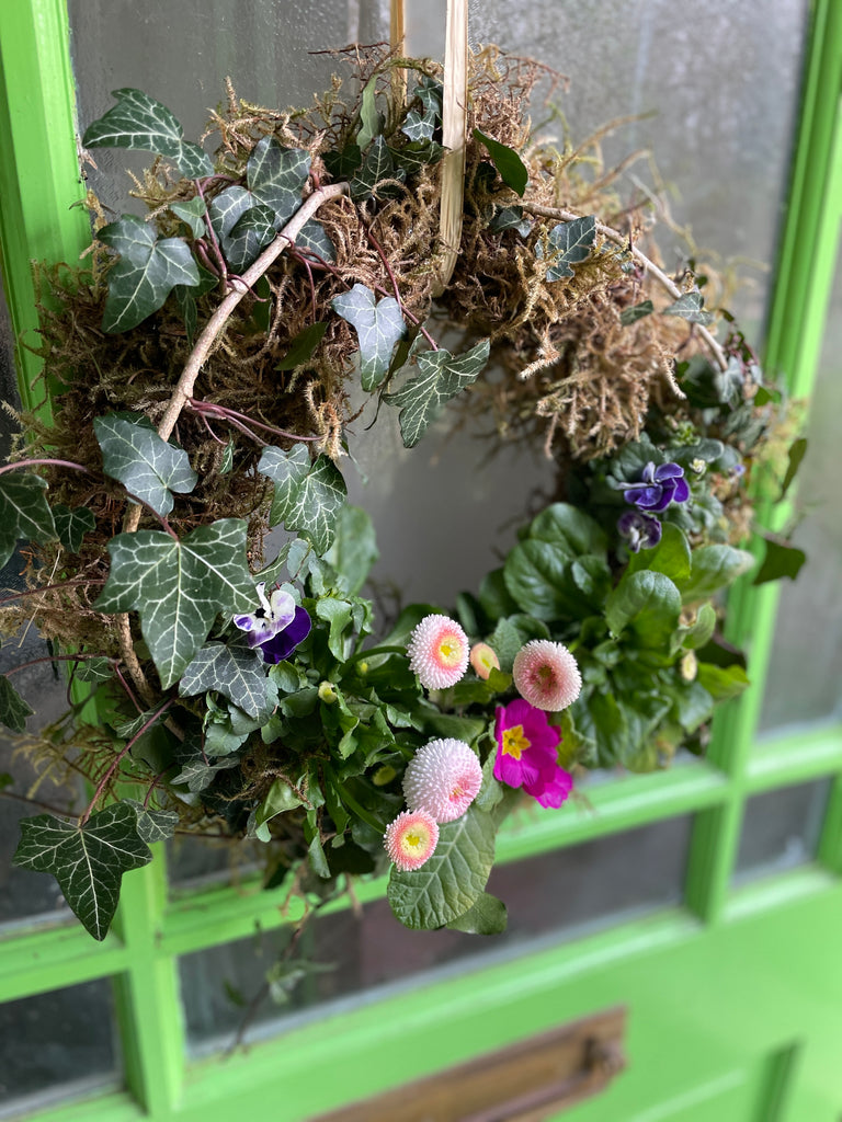 "Our beautiful living wreath made with spring bulbs and plants on a mossed twine base. Not only is it an eco-friendly gift, but it can also be planted in your garden once the flowers have finished blooming. Perfect for your Easter door!"