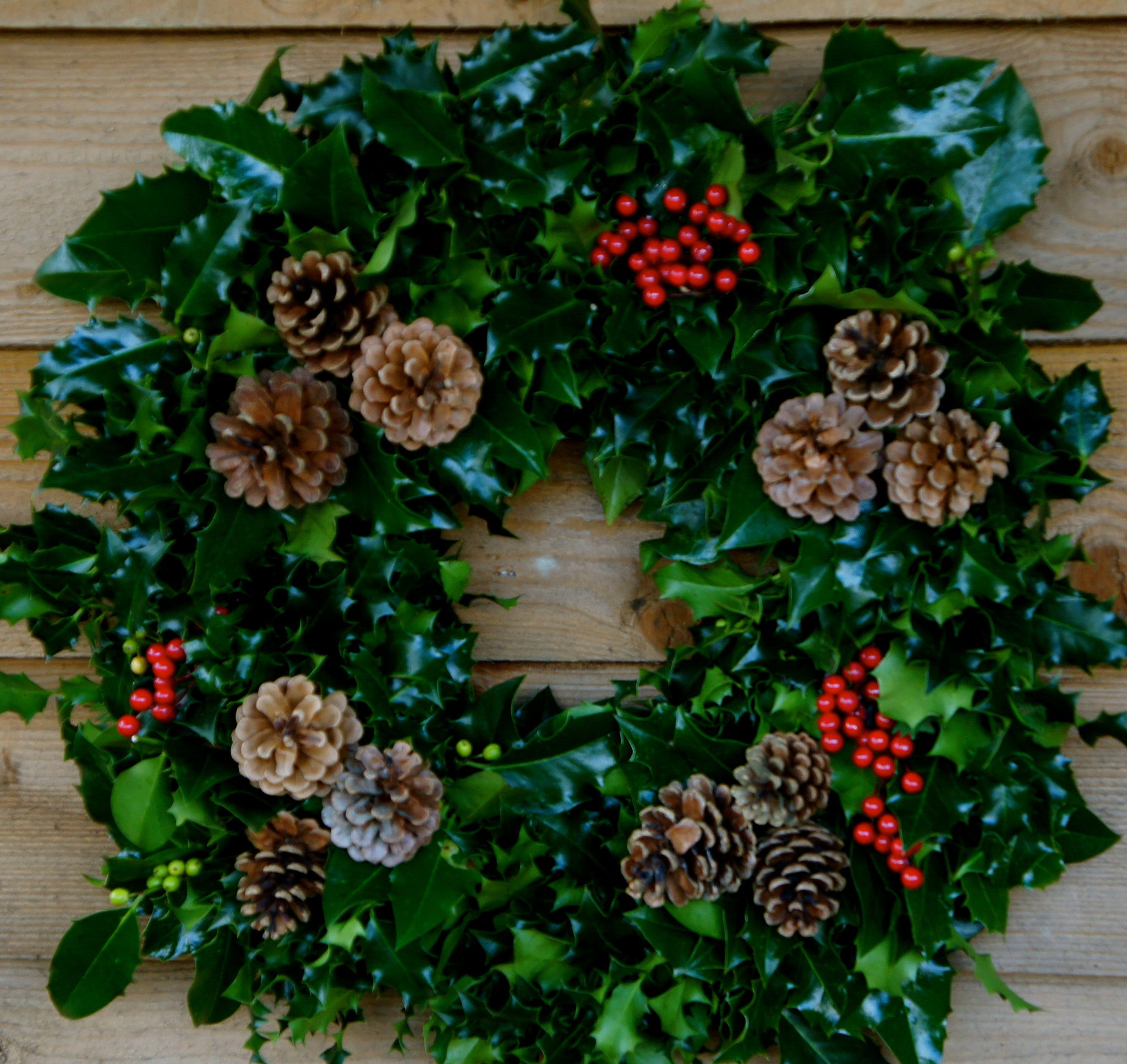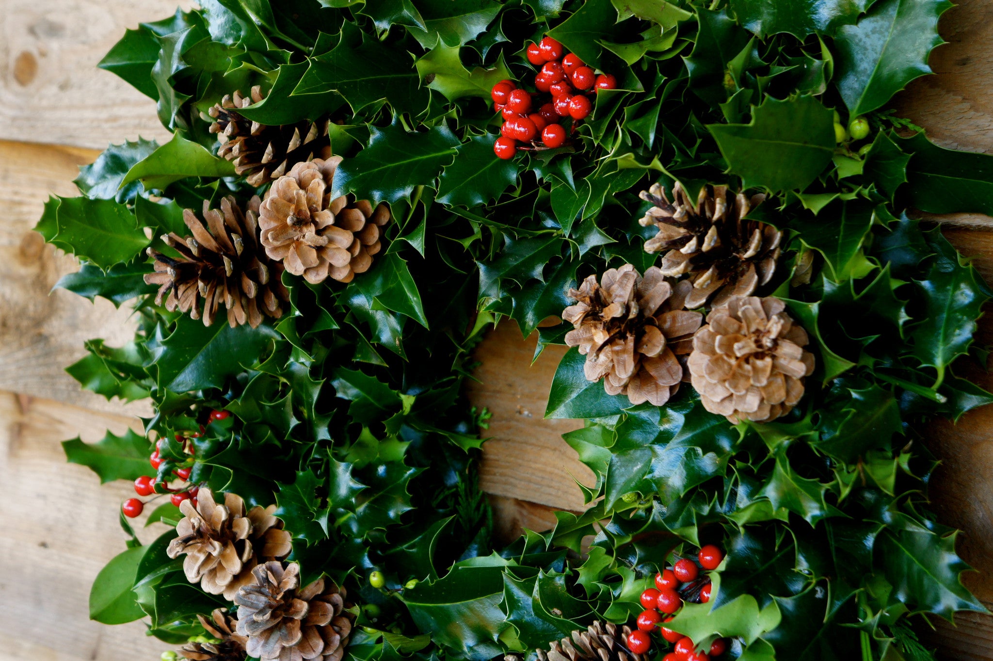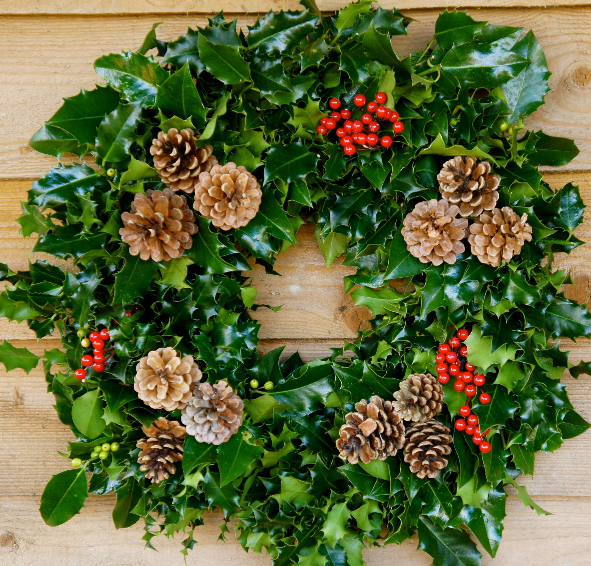 This traditional Christmas holly wreath features hand-crafted detailing with berries and cones. Each wreath is lush, full, and bold, showcasing a natural design perfect for your door. You can easily personalize it with additional decorations. For the freshest foliage, we suggest ordering from the second week of December. To maintain moisture and longevity, this wreath is best displayed outdoors. Be sure to consider adding lights for extra festive charm. Please note, our holly is locally sourced and naturally prickly!